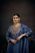 Zardosi Embroidered neck flowy kurta with embroidered pant and tissue dupatta with chhita all over.