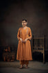 Attached Jacket with kurta. Hand-embroidery on neckline and pants. Detailed falling metal tikki on front edges of jacket.
